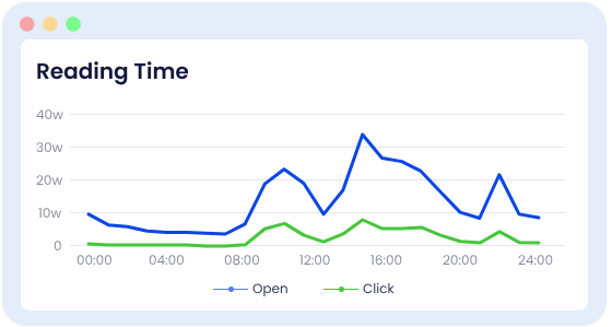 This powerful timing analysis enables you to identify when your recipients are most likely to read your emails, allowing you to schedule sends during these optimal time periods for maximum engagement and improved campaign performance.